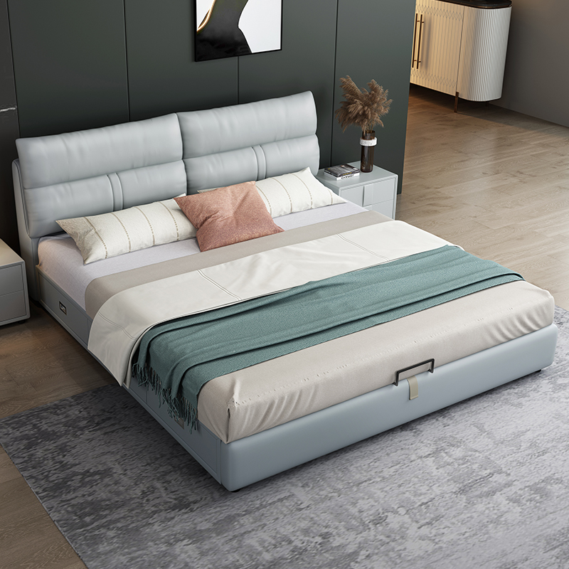 Single-layer leather bed upgrades solid wood frame 300 beds 2 cabinet bed 3E brown bedding 2 cabinet bed Latex-add-on bedding 2 cabinet bed 9 partition 5D latex mattress 2 cabinet bed