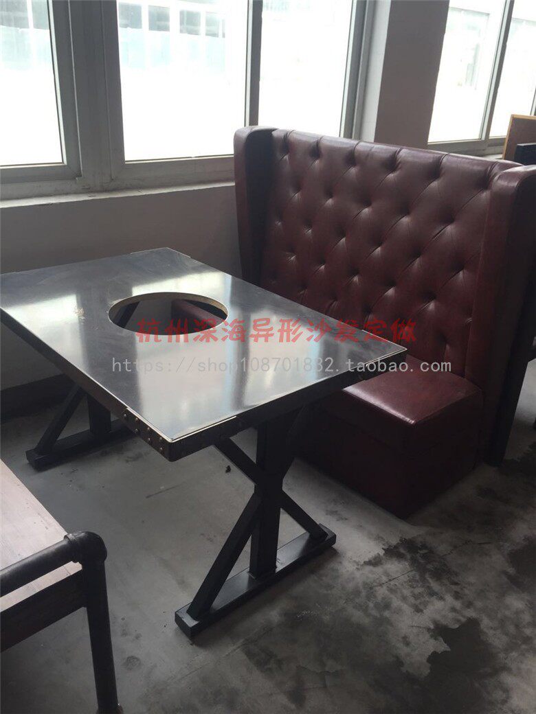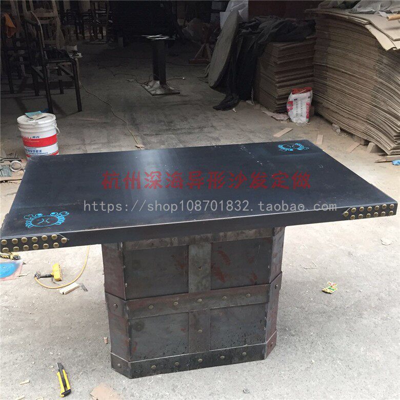 Fire Boiler Shop Casserole Shop Steak Shop Roast Fish Grilled Meat Shop Cold Plate Table Hide Liquefied Gas Industrial Wind Retro Table