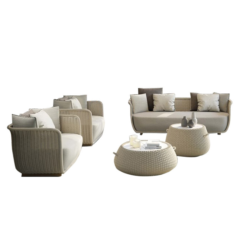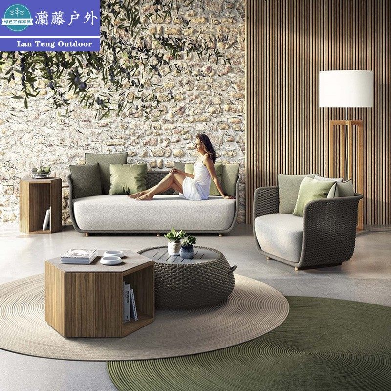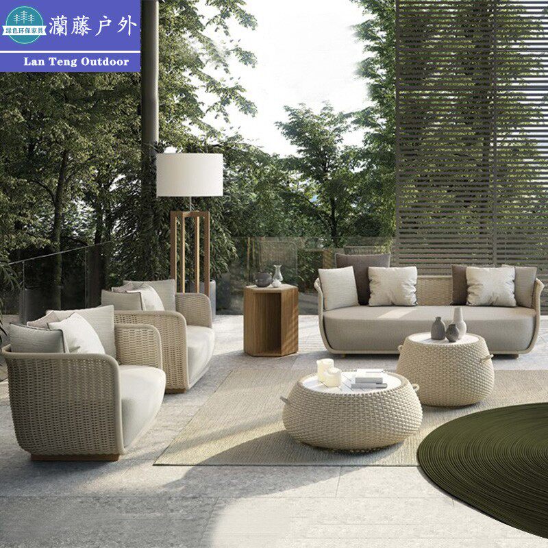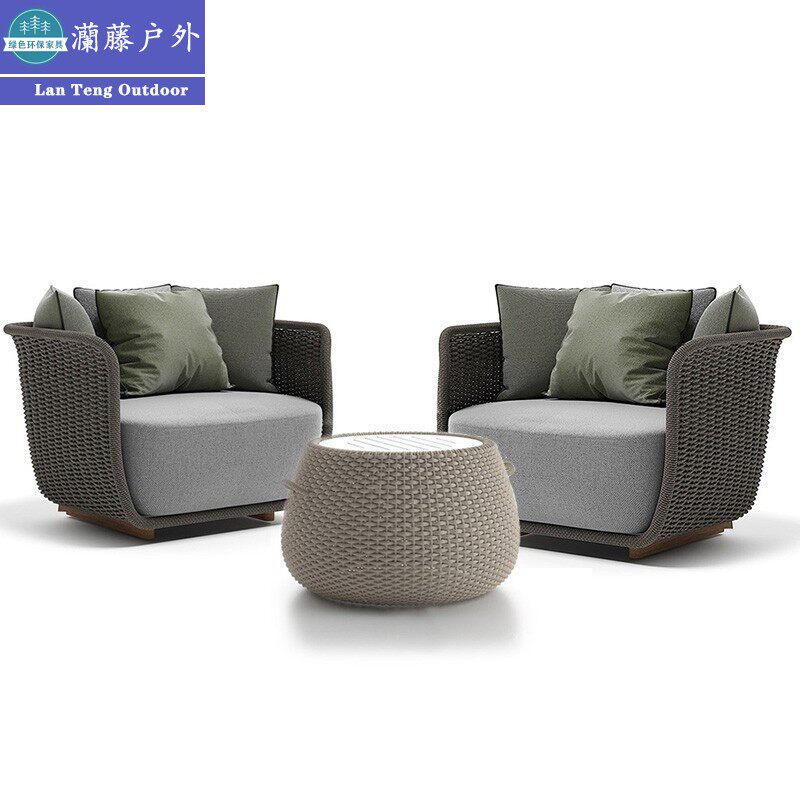 Outdoor sofa rattan chair three-piece garden courtyard rattan furniture sample house display center hotel open-air balcony leisure combination