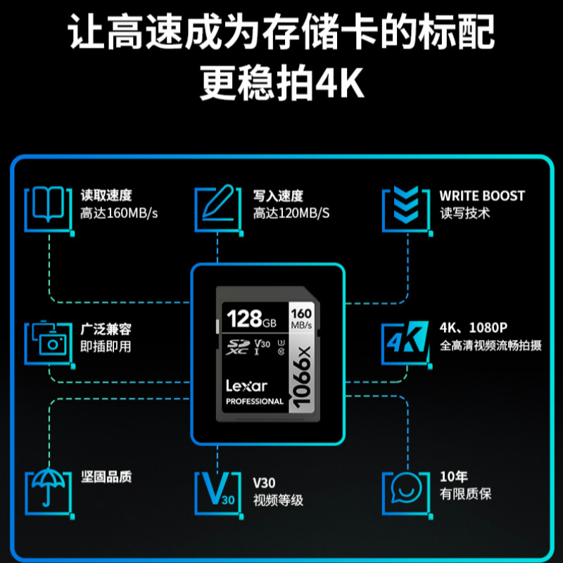 Lexar 128G Memory Card SD Card V30 Digital Micro SLR Camera High Speed Memory Card