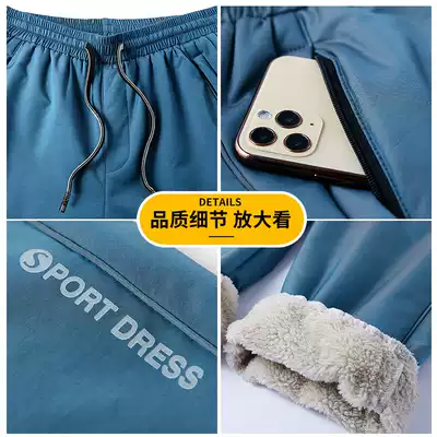 2021 new stormtrooper pants men plus velvet thick windproof and waterproof autumn and winter gradient symphony lambskin drawstring pants men