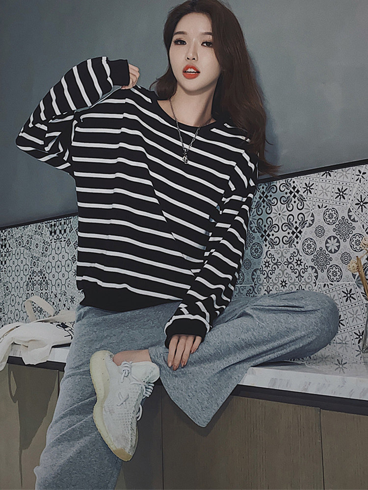 Stripes long - sleeved grey pants