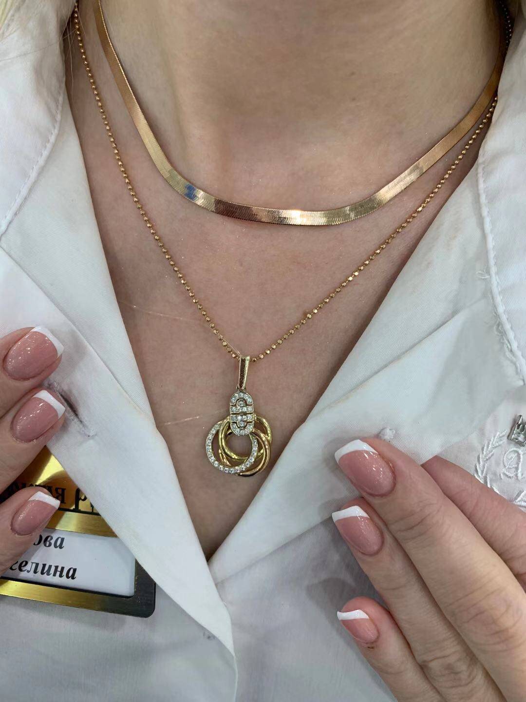 Sweet Mom Russian 585 purple gold necklace net plate flat snake valley
