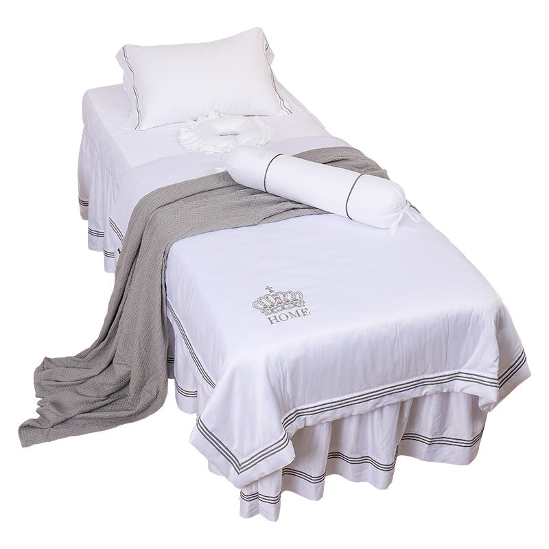 High-grade simple beauty bed cover four-piece cotton four-season universal massage bed cover massage bed with hole custom logo