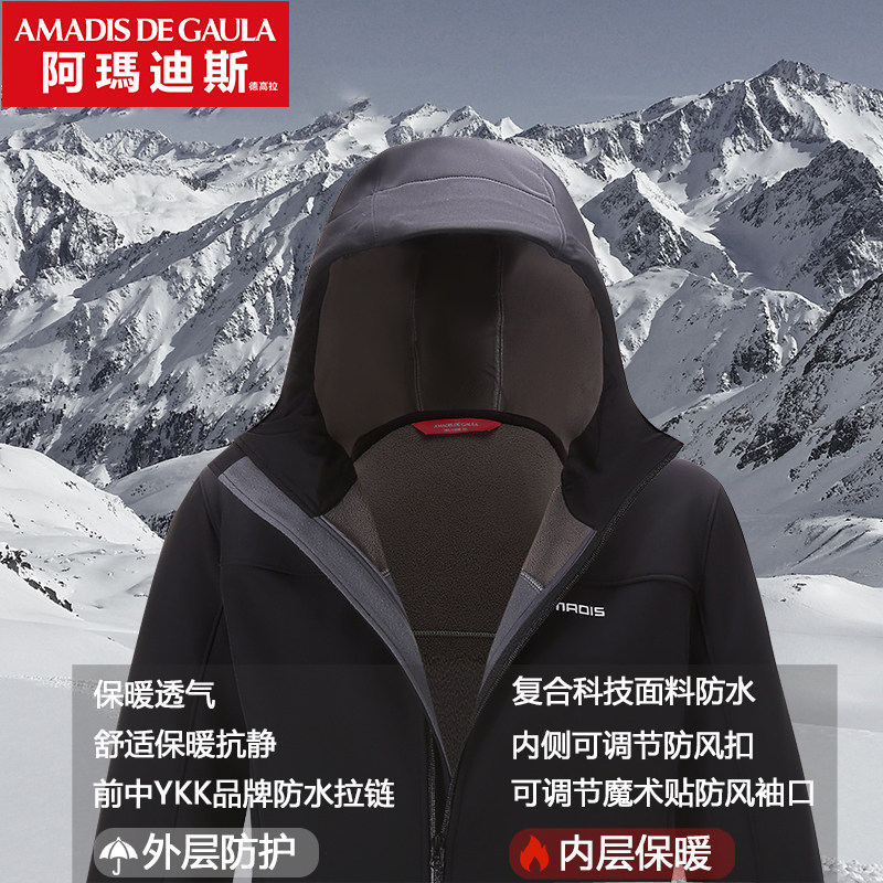 Ahmadis Softshell Submachine Clothing Male Tide Card Spring Autumn Thin Phishing Clothing Outdoor Plus Suede Thickened Water-resistant Softshell Clothes