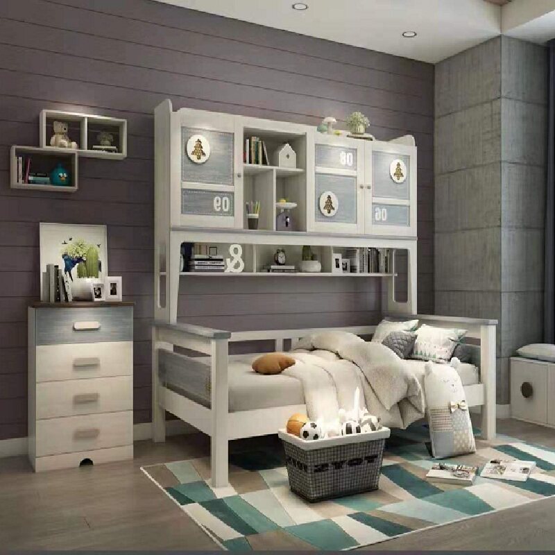 Nordic Children's Bed Boy Single Beds 1 35 m Solid Wood Multifunction Wardrobe Bed Combined Bed Head Cabinet