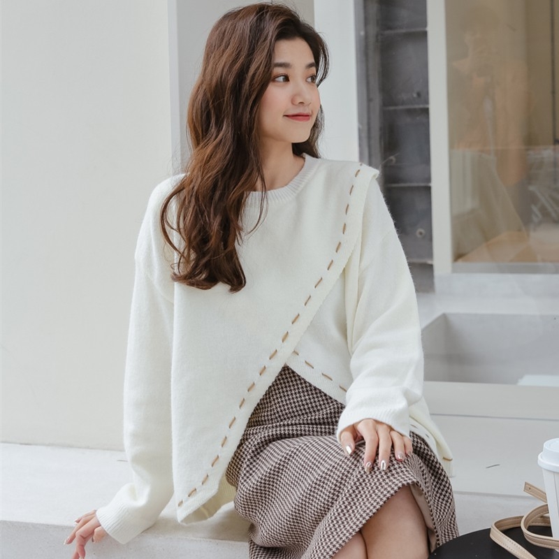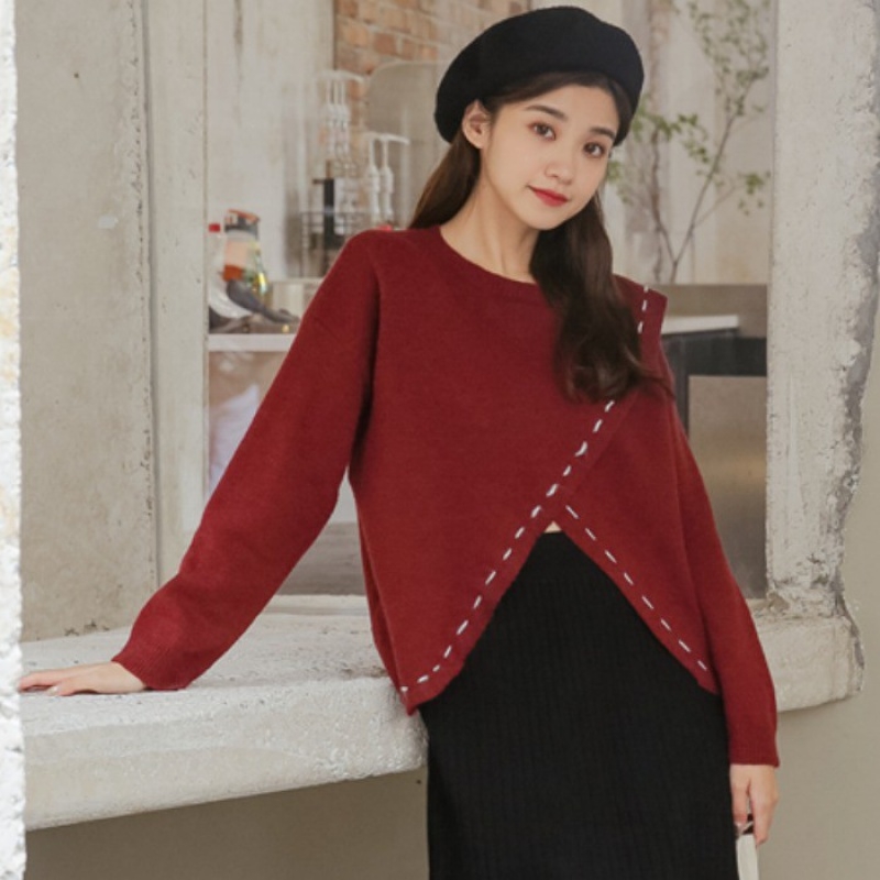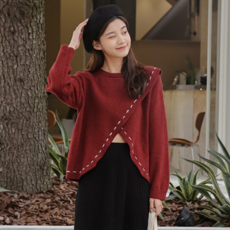 Red sweater new 2020 explosions loose outer wear design feeling small group split irregular gentle wind coat women