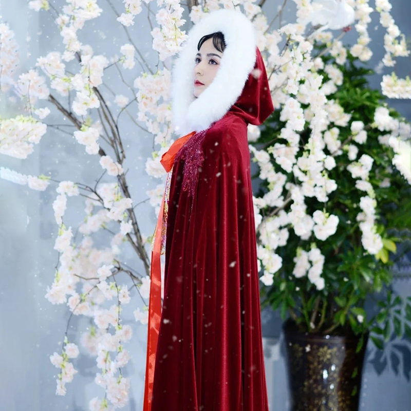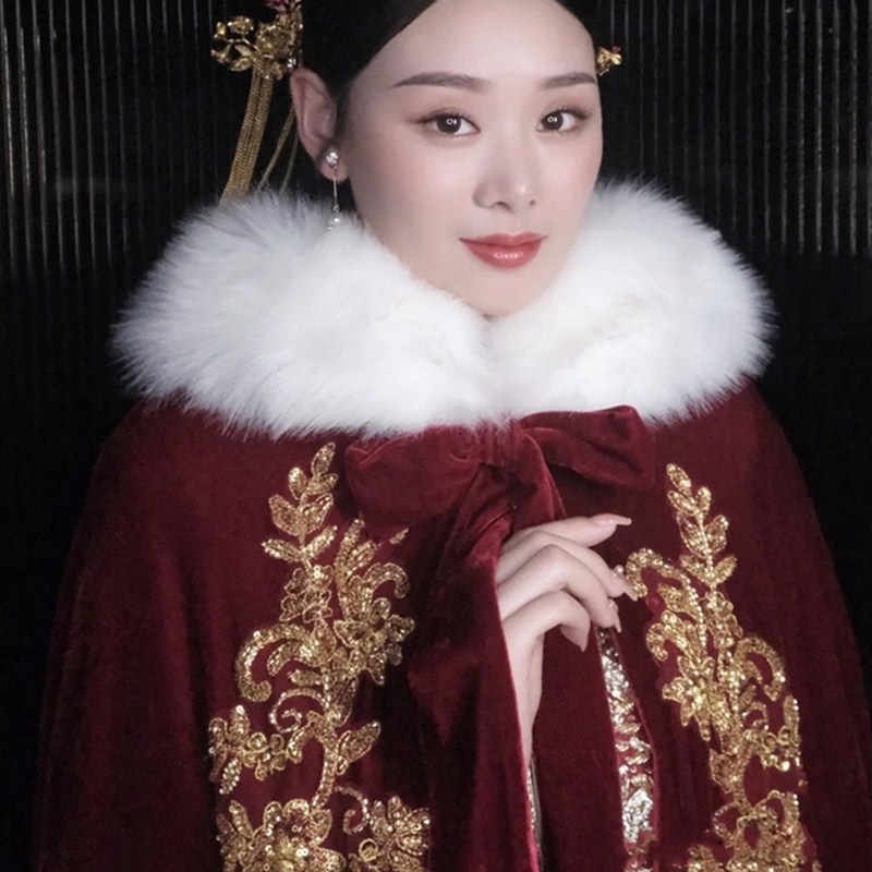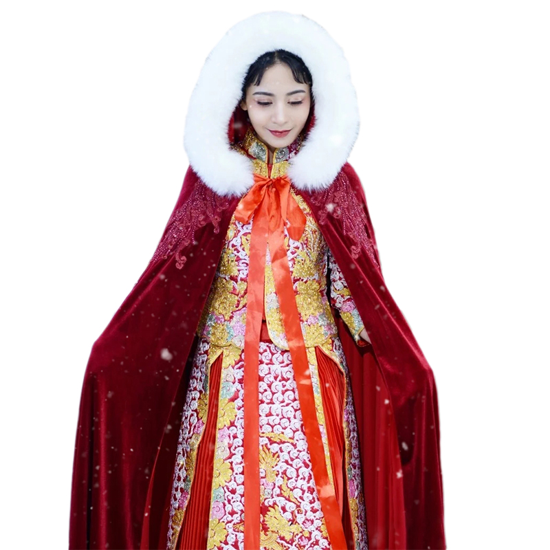 Show and clothing The Beatles Autumn Winter Style Red Bridal Chinese Wedding Hanfu Ancient Wind Cape Warm Thickening Ancient Dress Jacket