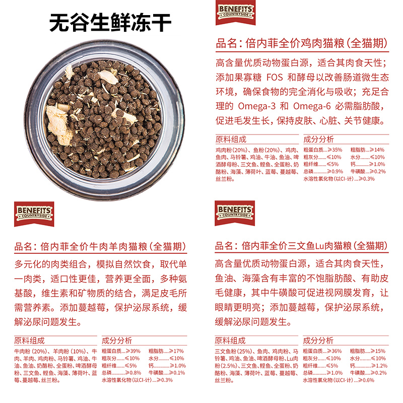 Beneficial cat food 1 8KG natural grain-free freeze-dried chicken beef salmon red meat into young cat nutrition 6 8kg
