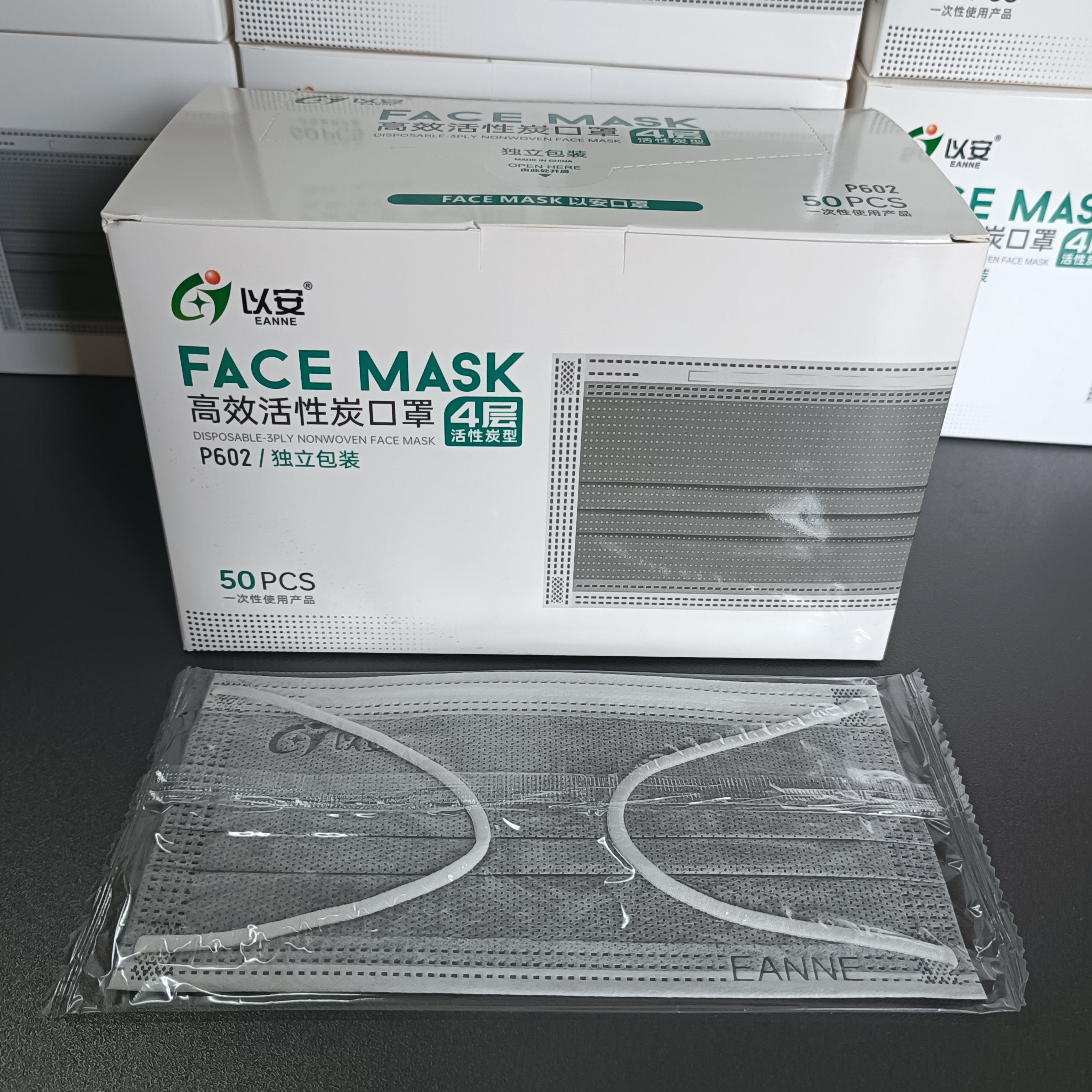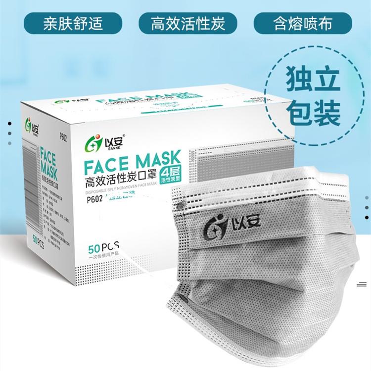 Yi'an P602 Activated Carbon Four-layer Disposable Mask Individually Packaged Dustproof, Anti-Foaming, Breathable, Melt-blown Cloth