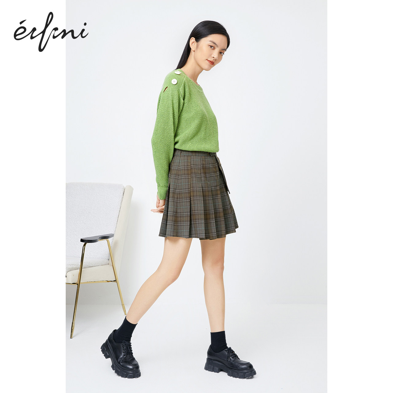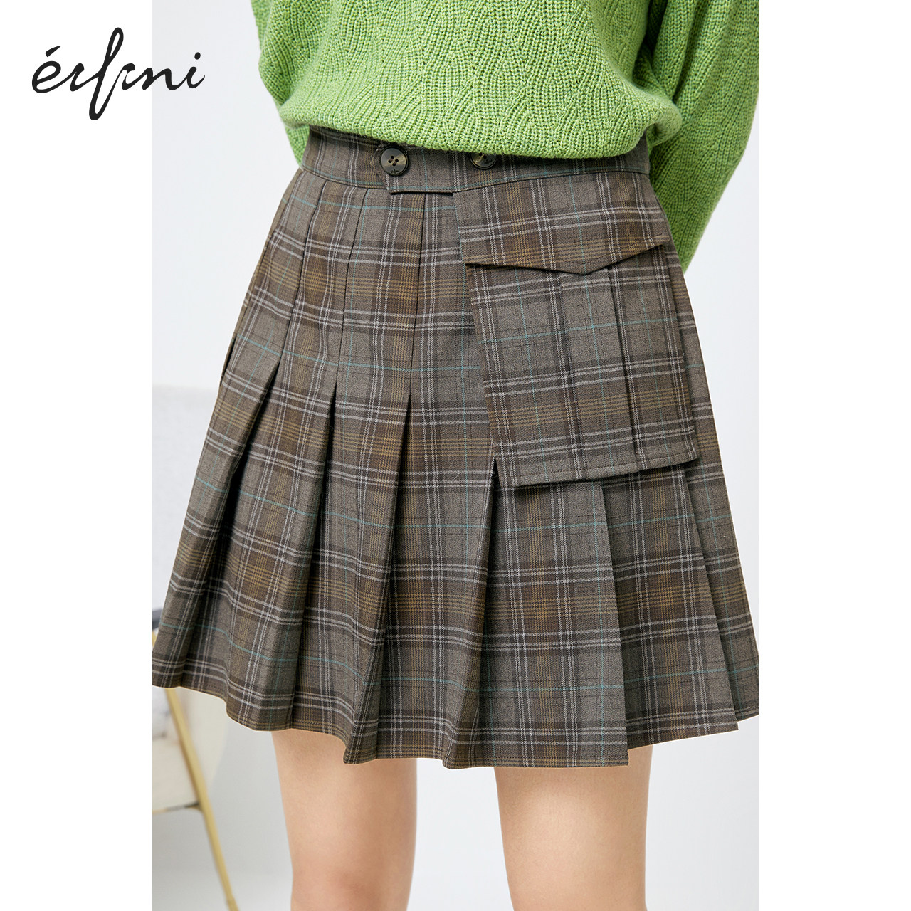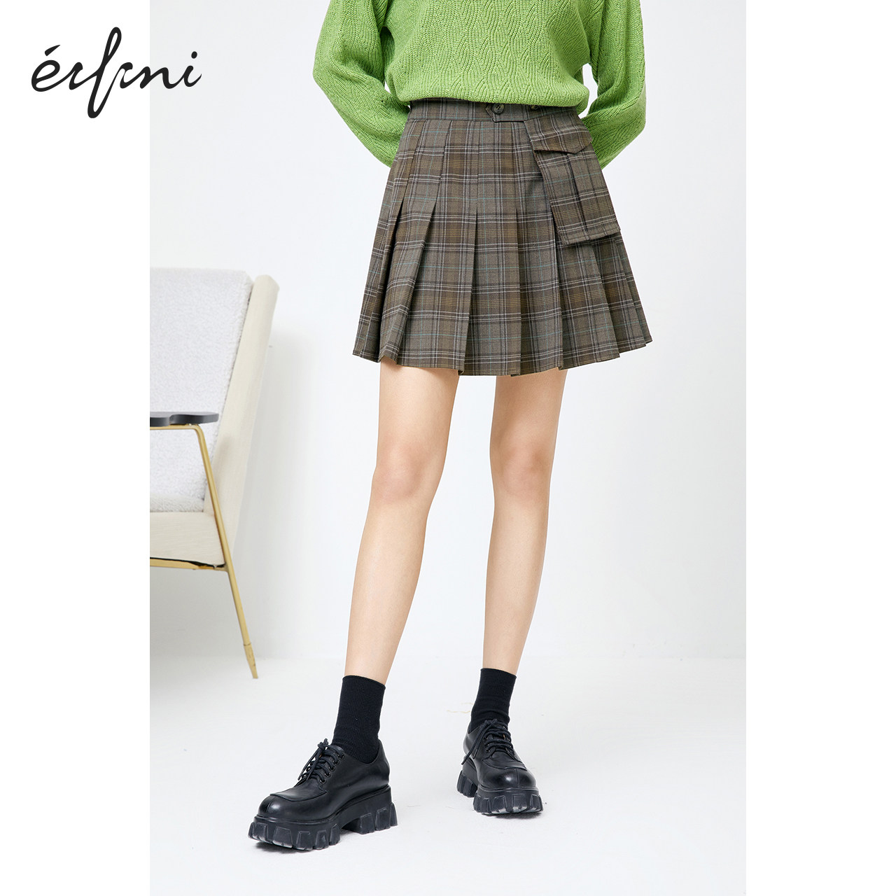Iveli design sense half-body dress 2022 years winter new plaid short dress plexigo