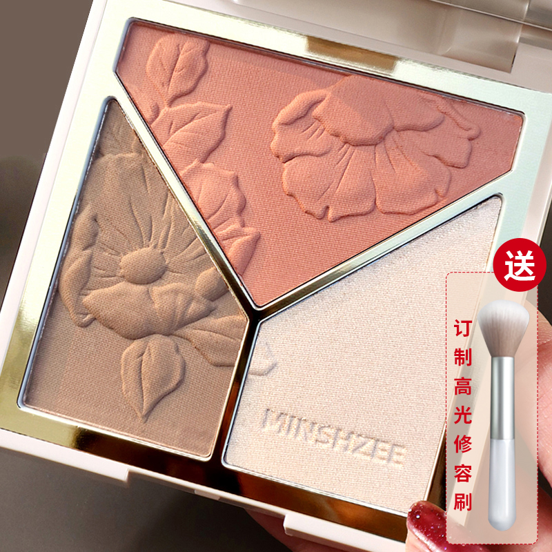 Tricolor high light repair plate flashing face shiny nose shadow of the shadow of the blush one disk
