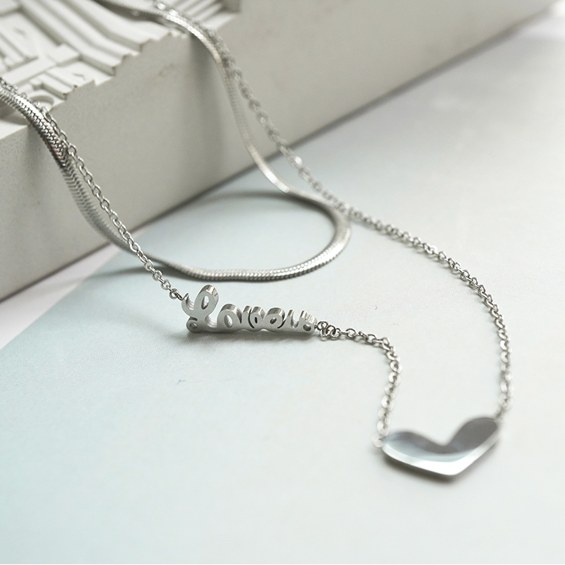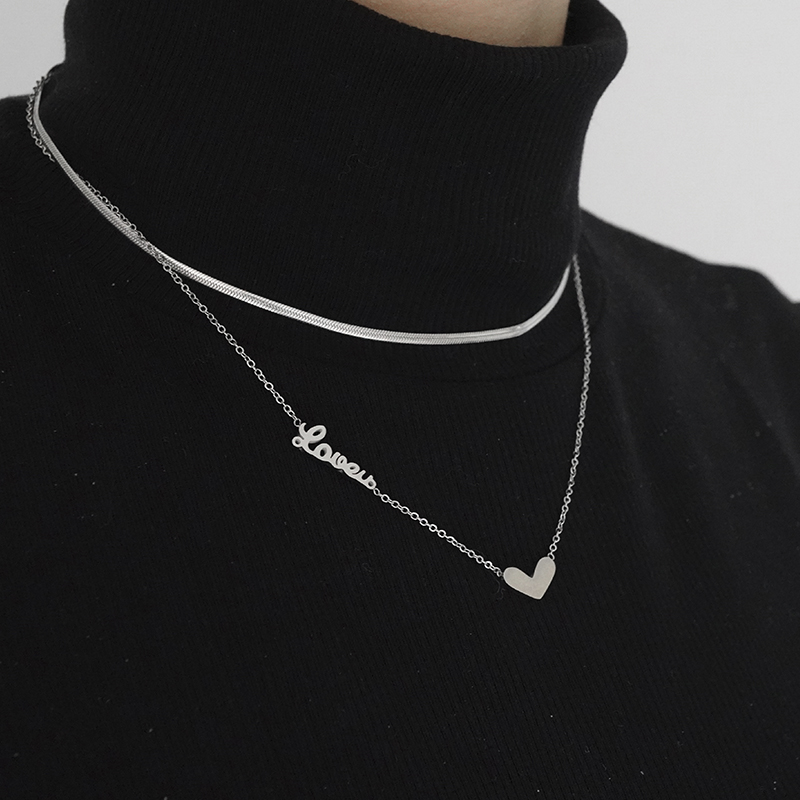KANSAI titanium steel double stacked core pendant necklace in cold wind snake bone chain temperament personality chain