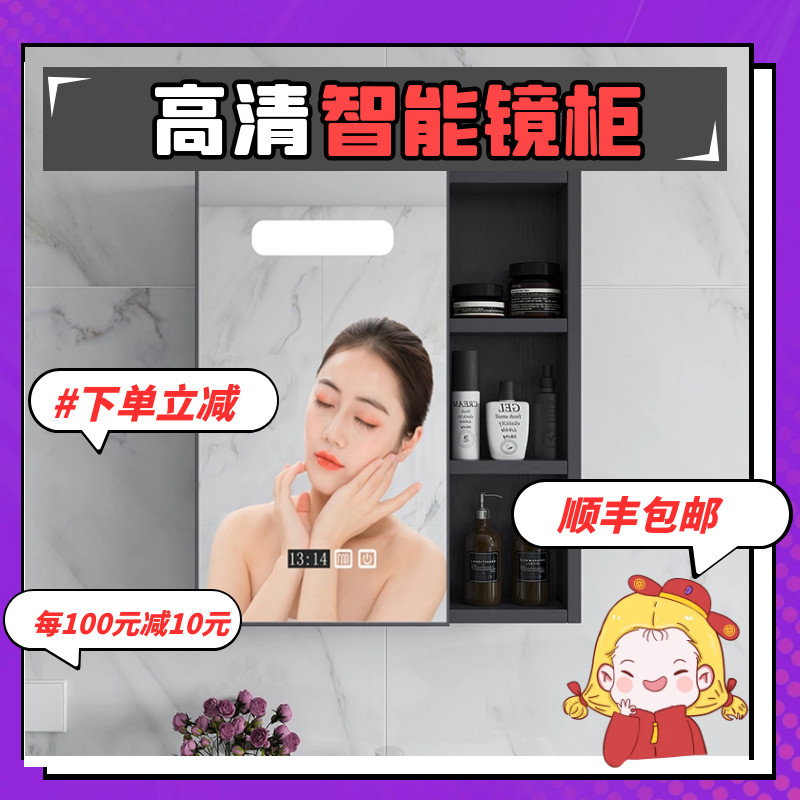 Bathroom mirror cabinet intelligent storage mirror box de-fog makeup mirror storage light luxury cabinet wall hanging cabinet