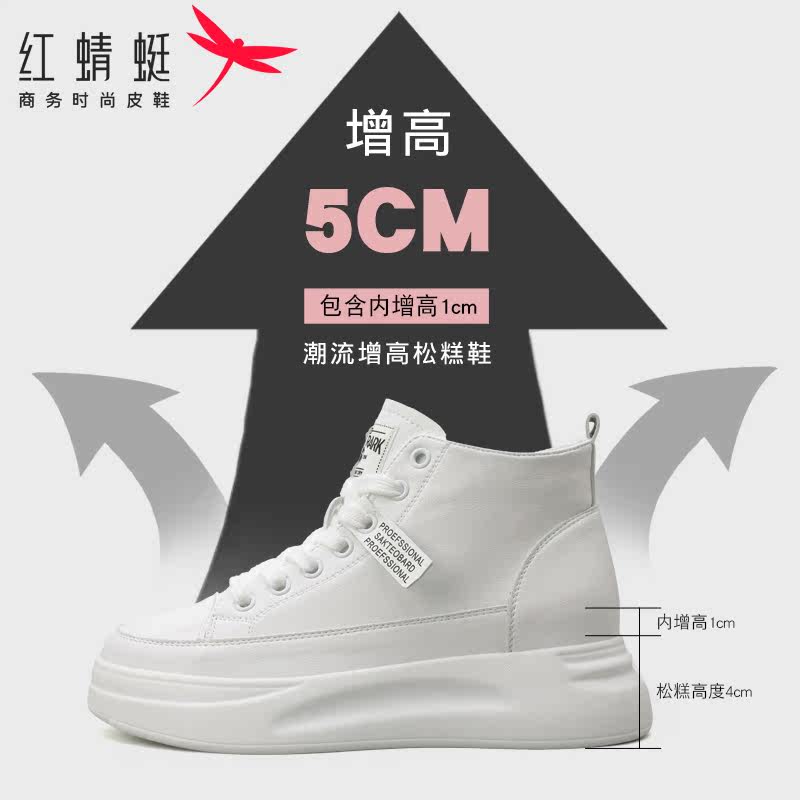 Red Dragonfly high gang white shoes girls in 2023 new spring female shoes will increase thick sole casual shoes