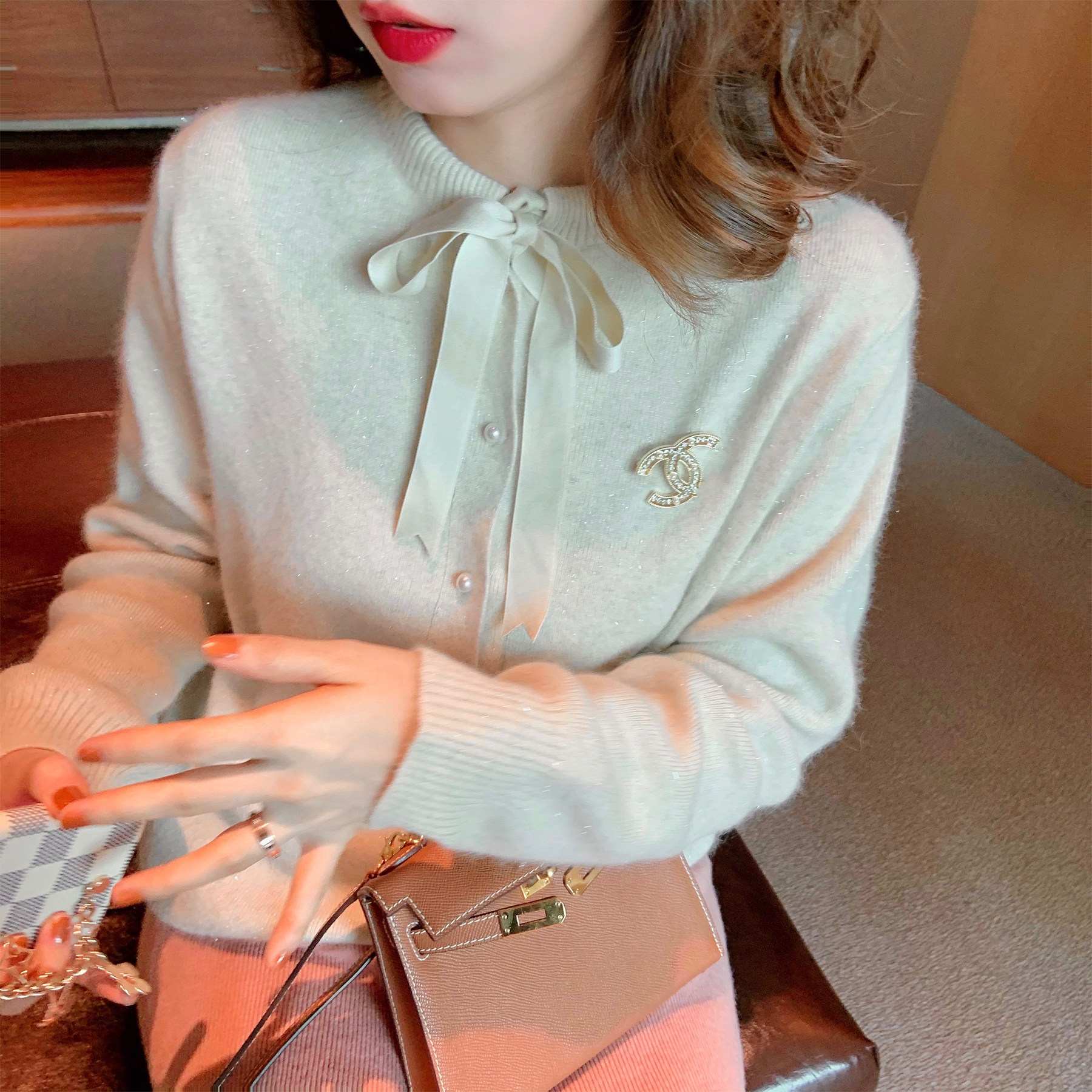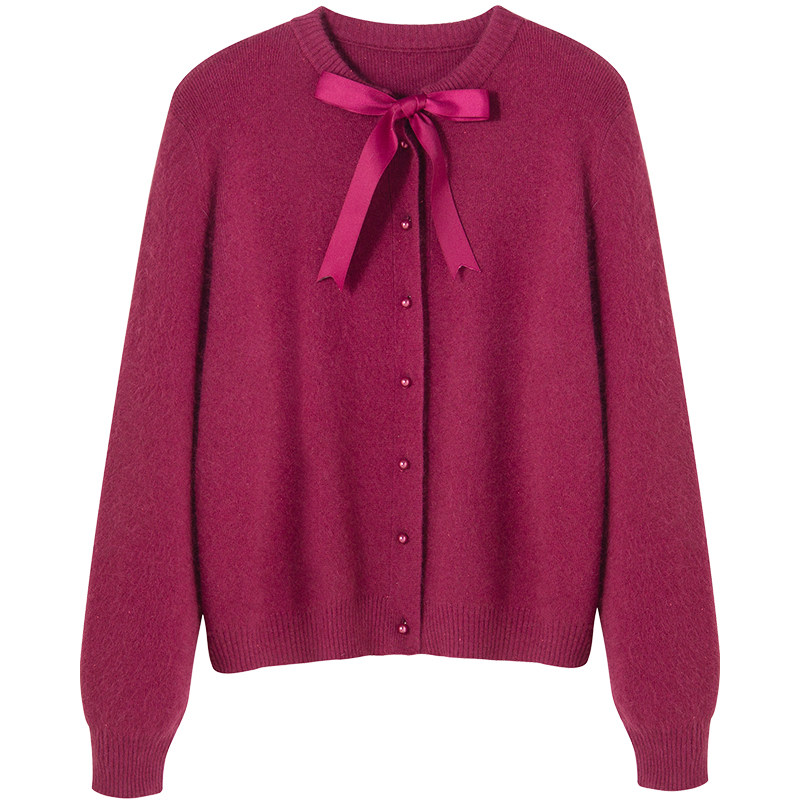Rose red bow sweater women's spring and autumn cardigan coat women's knitting 2021 New loose foreign style jacket