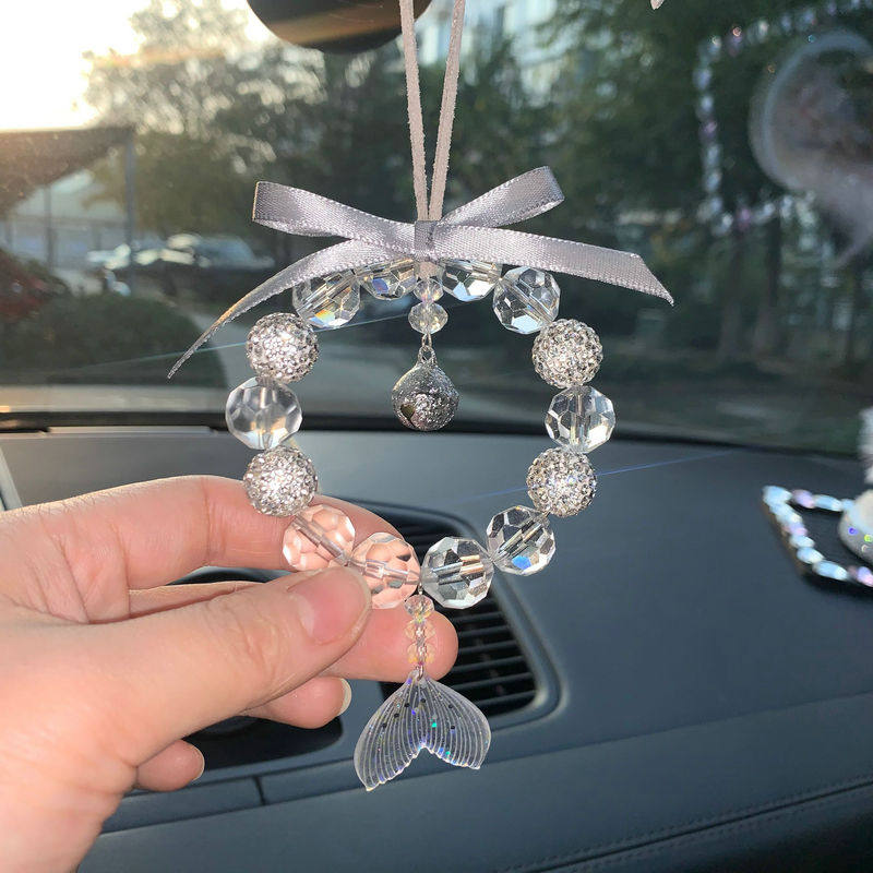 Small Red Book Ins car pendant crystal inlaid drill rear mirror hanging decoration in car Pendant Mermaid On-board Decorative woman