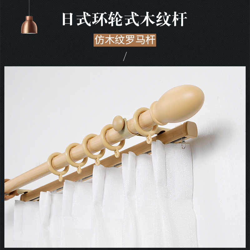 Modern minimalist Roman rod curtain rod thickened wood grain Roman rod double rod single rod Roman rod bracket ring