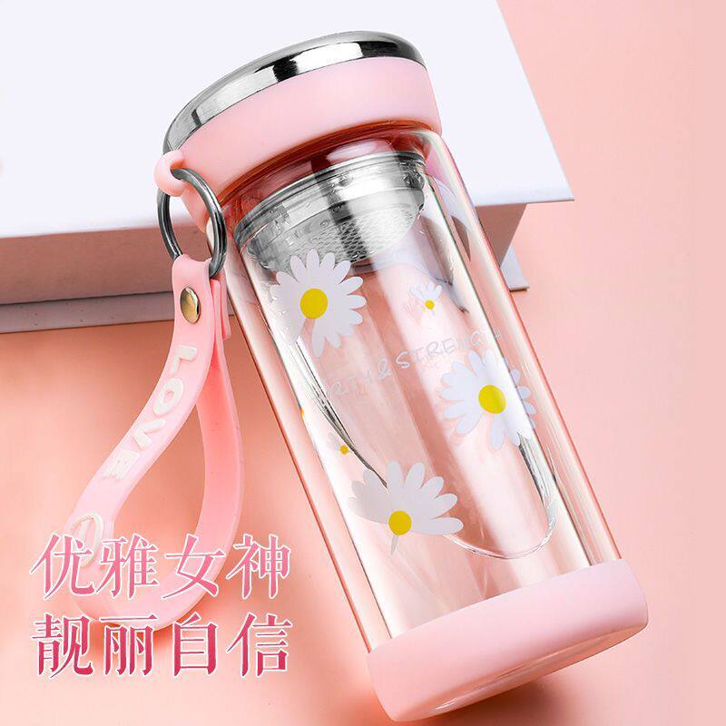 Double glazed cup of glass tea cup with large capacity minimalist with lid portable woman thermal insulation and burn-proof with handle water cup