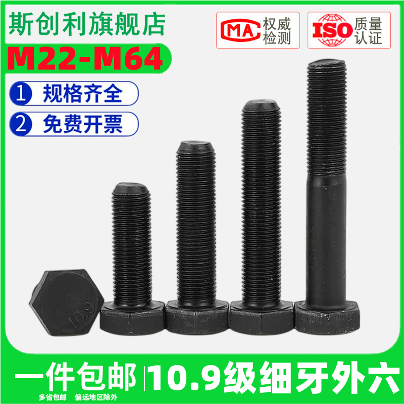 10 Grade 9 fine-tooth screw outer hexagonal fine-button bolt with fine-threaded young-tooth screw M22M24M27M30M36-M64