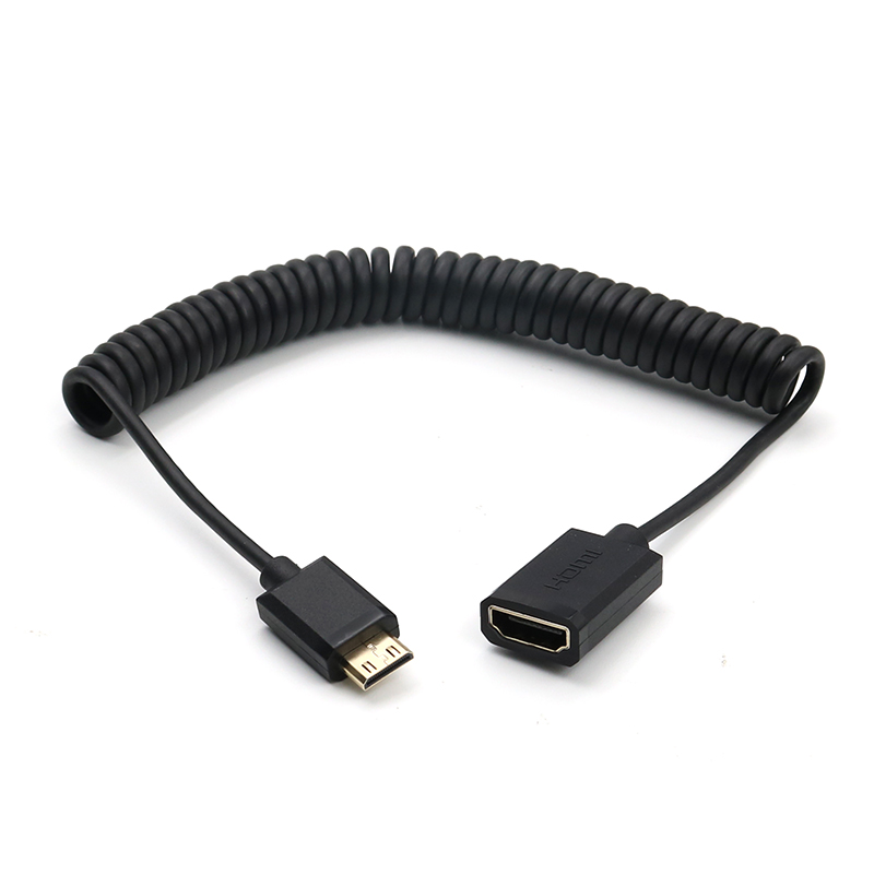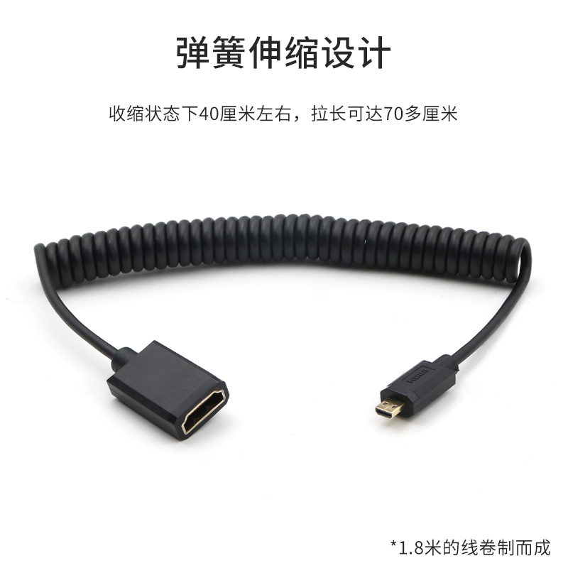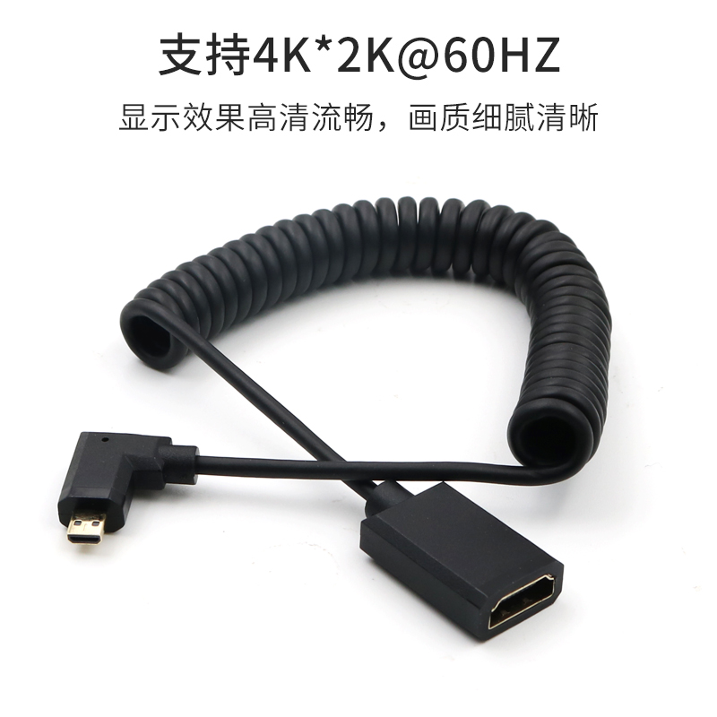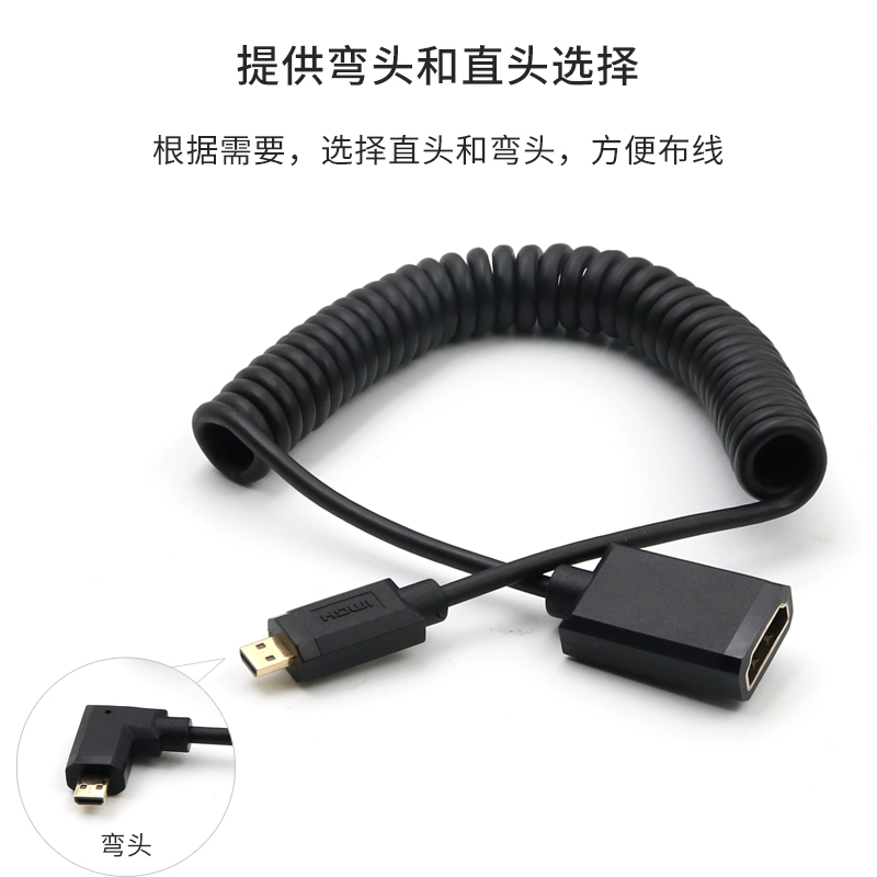 Micro Mini turn to standard HDMI connector 4K spring telescopic 60HZ data line lengthened extension adapter elbow miniature revolution mother mini male head converts high-definition mother head big turns small