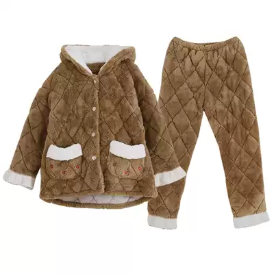 Coral velvet pajamas women autumn and winter plus velvet thickened three-layer cotton warm hooded fashion Winter Home suit women