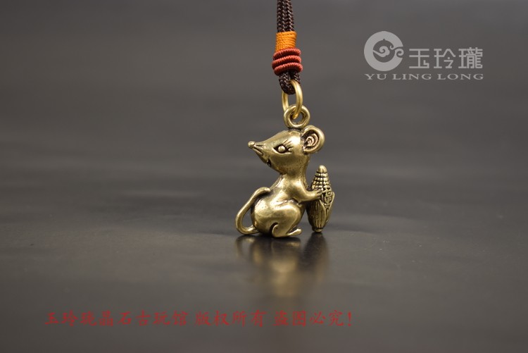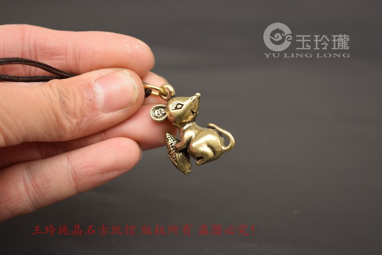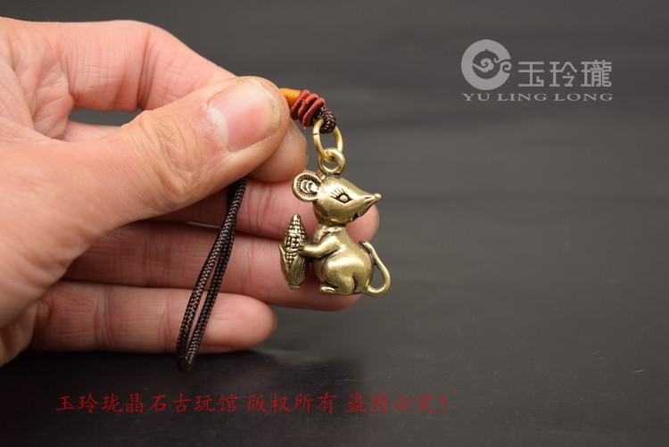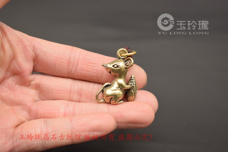 Cute Darling Bronze Sculpture Wanford Small Rat Pendant Solid Brass Mini Zodiac Mouse Key Buckle Hung Bronze Decorated Ancient Play Bronze