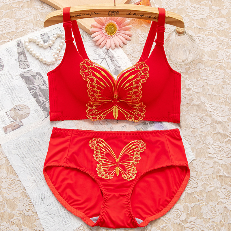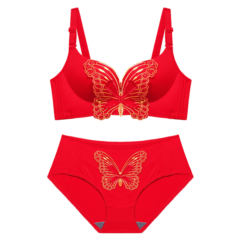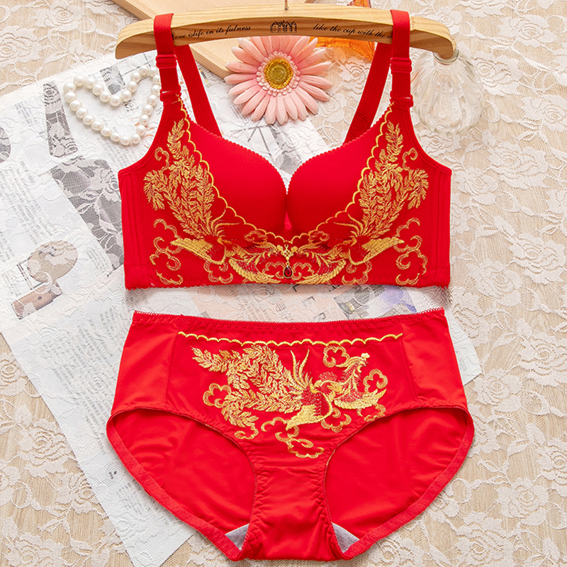 This Life Year Red Lingerie Female Tiger Year No Steel Ring Sexy Lace Up to gather sub-breast bra lingerie suit