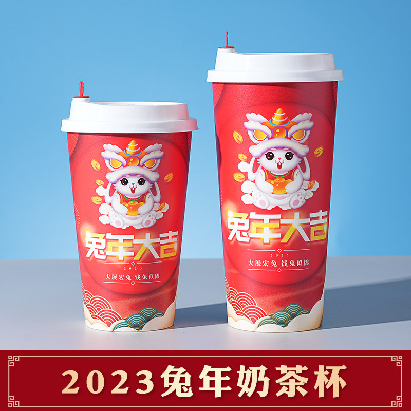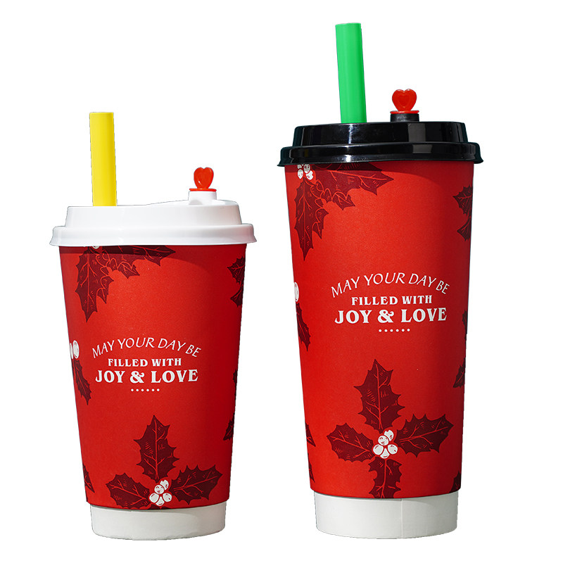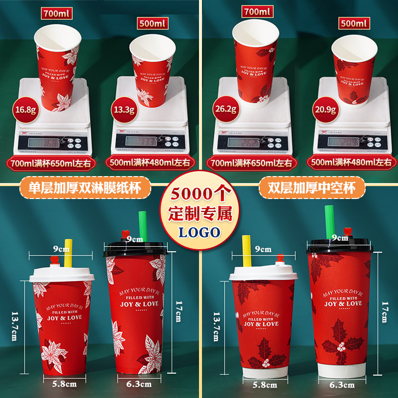 Milk Tea Cup Disposable Cupcake Commercial can seal double hollow Christmas New Year red hot drink 500 700ml