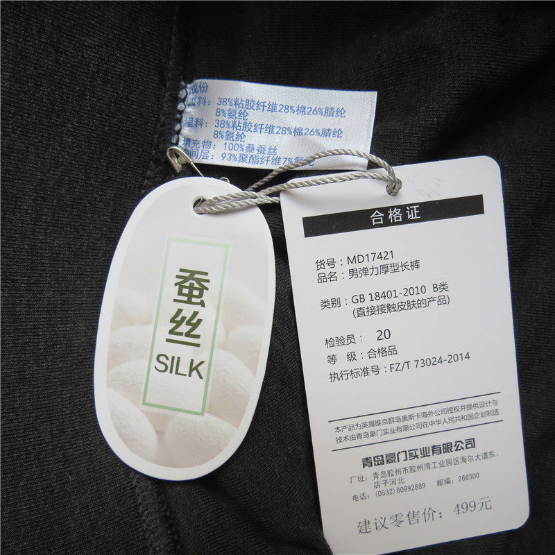 Giants warm pants men's mulberry silk thick warm trousers elastic thick double layer men's warm cotton pants MD17421