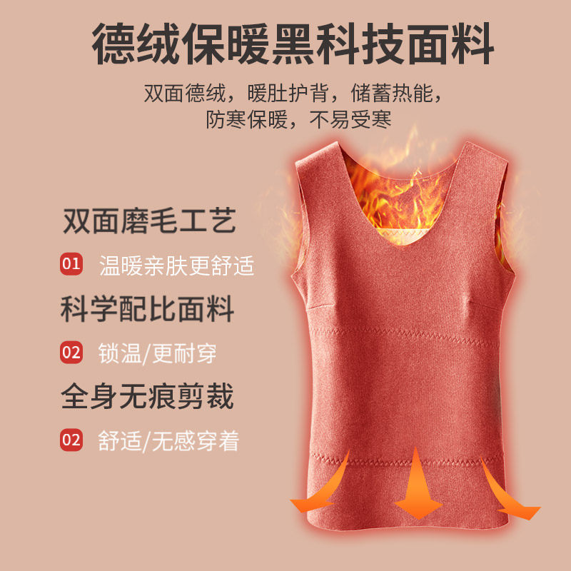 No trace thermal vest ladies plus velvet thick bottoming autumn and winter wear De velvet heating cotton sling underwear
