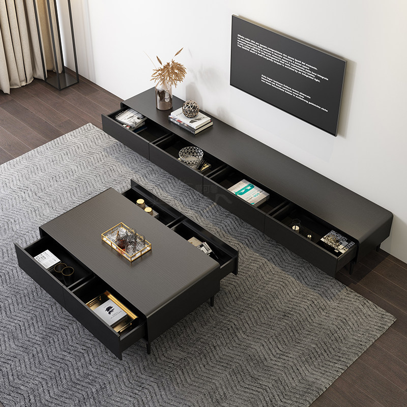 Modern minimalist coffee table Nordic rectangular size apartment living room black gray light luxury creative storage tea table with legs - Taobao