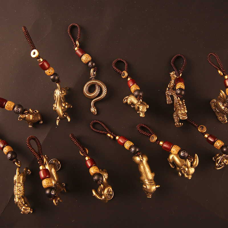 Brass Key Buckle Pure Copper Hand Solid Creative Zodiac Zodiac This Life Year Car Key Necklace Pendant male and female