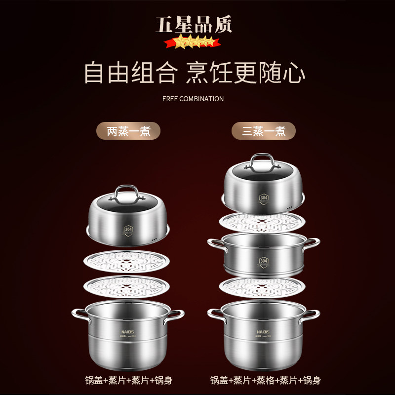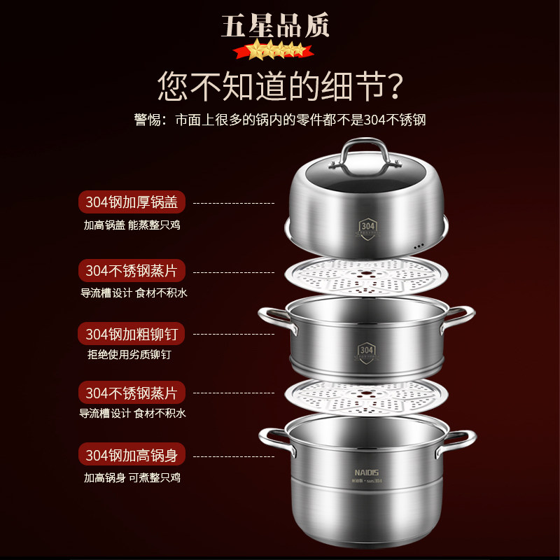 Netis steamer 304 stainless steel three-layer household thick steamer steamed steamer steamed steamer steamed