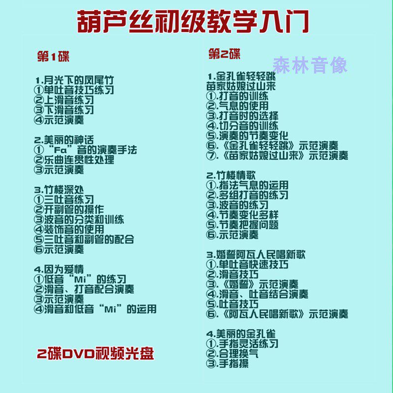 Video CD-ROM CD-ROM Teaching materials Learn to explain playing demonstration Learn to play gourd silk basic skills Introduction tutorial 2DVD