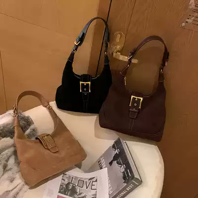 Sandro Ifashion fashion plush armpit bag soft leather women's bag messenger shoulder portable retro crescent bag