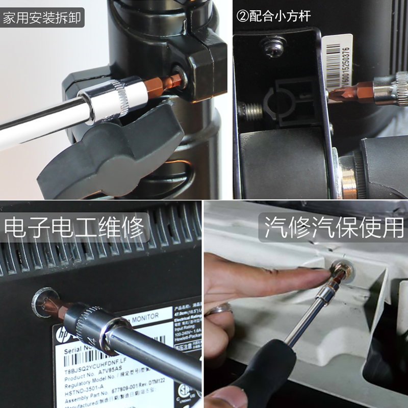 Screwhead picker small square rod socket screwdriver rod 1 4 pressure equipped with screw tool small fly socket wrench handle