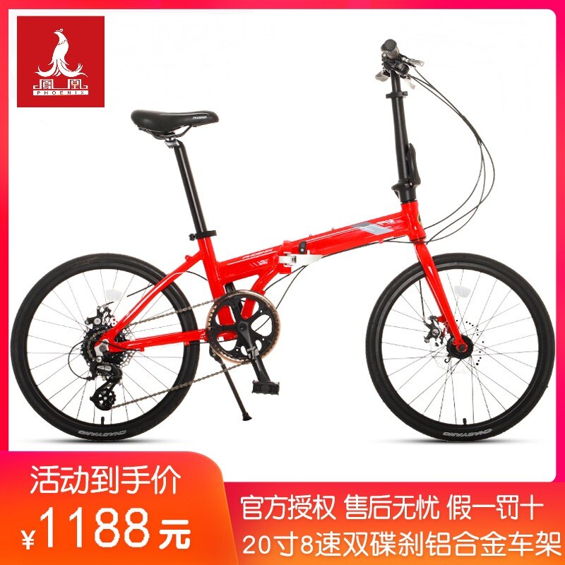 Phoenix Folding Bike 20 Inch 8 Speed Student Male and Men's Scooter Scooter ultra-light commuter Double Disc Brakes
