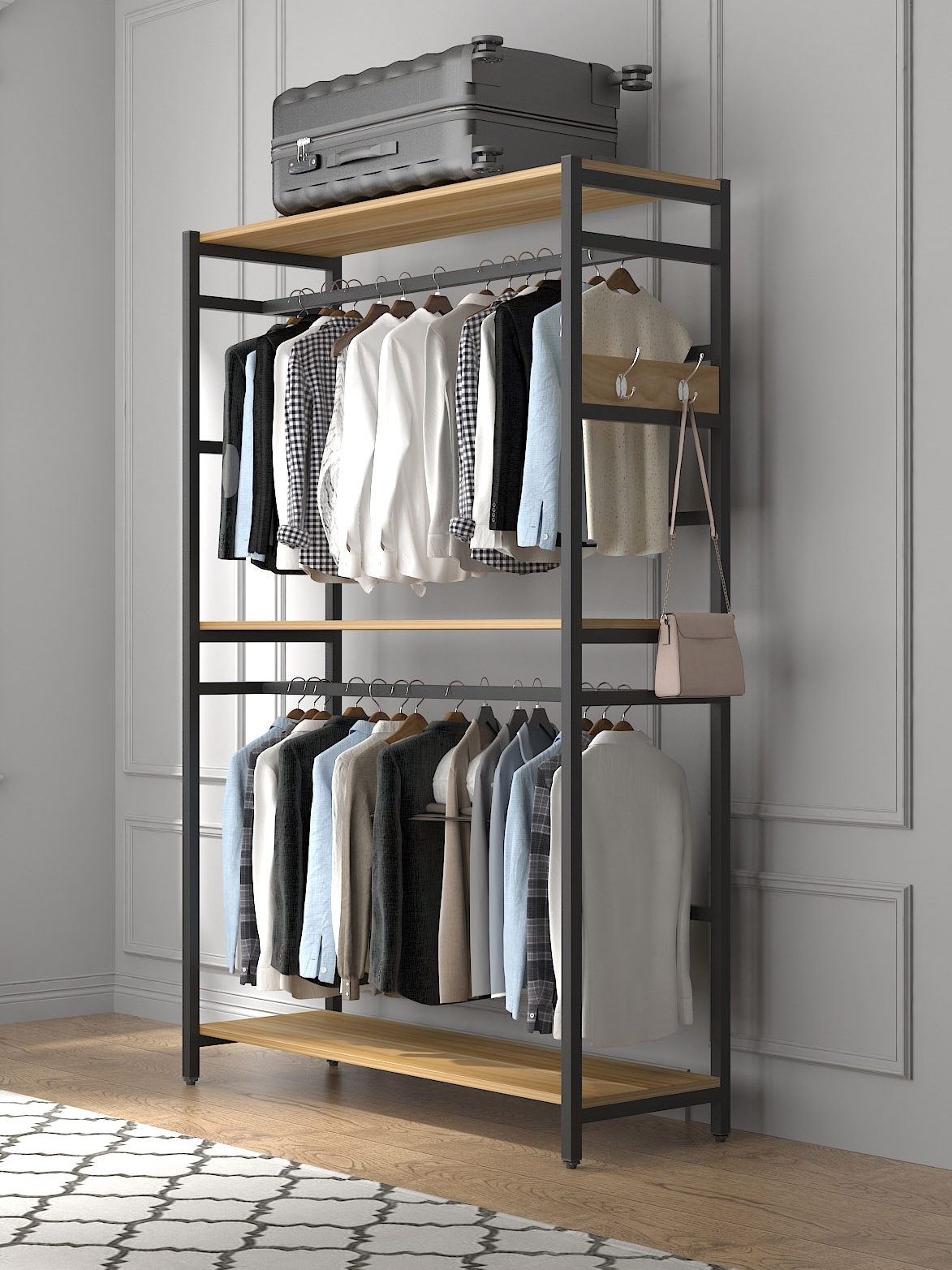 Simple floor hanger bedroom home apartment rental room environmental protection open wardrobe curtain rack cloakroom