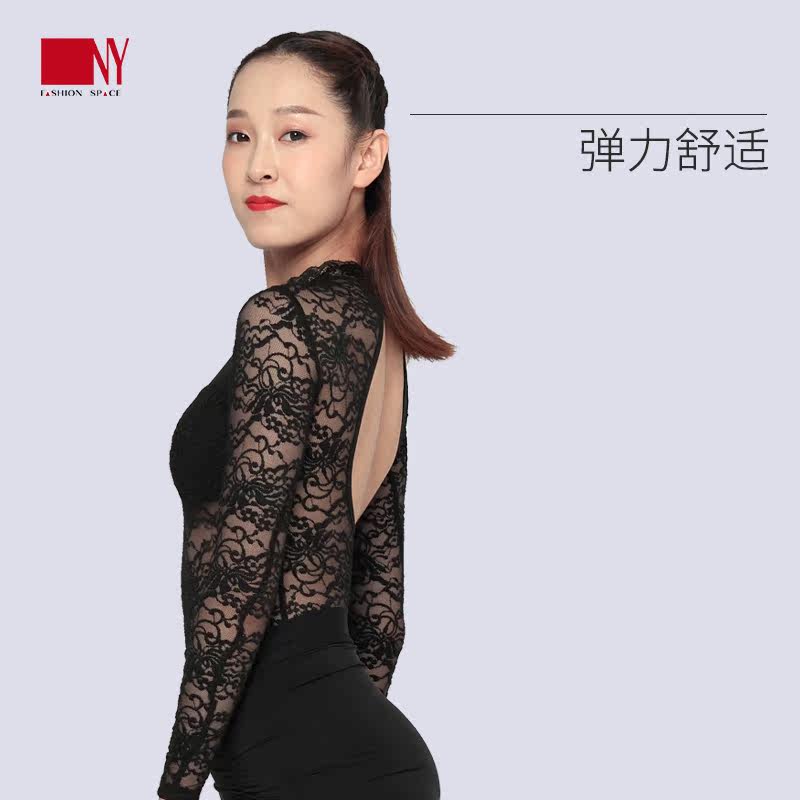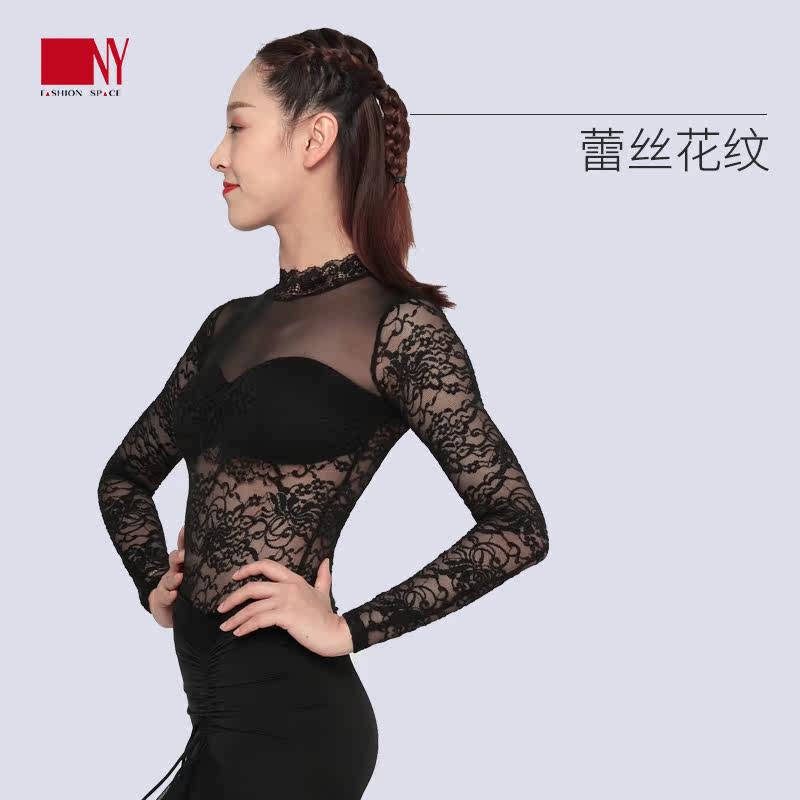 Narts NY Latin dance dress Women's high collar Sexy Sexy Dew lace with blouses Long sleeves Morden Dance National Dancing