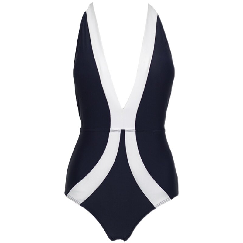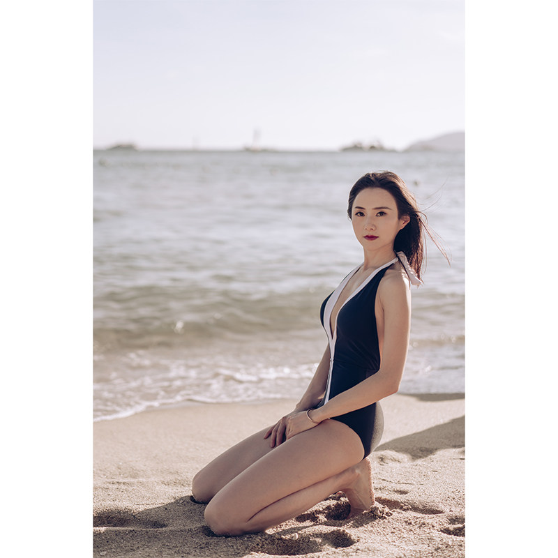One-piece swimsuit ins resort style super fairy two-color hanging neck beach hot spring slim-fit belly sexy halter swimsuit