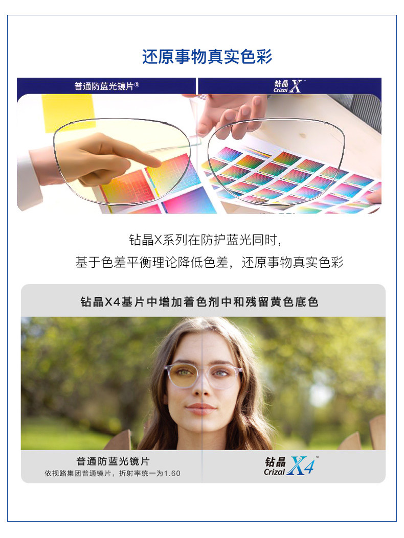 Essilor lens 1 60 diamond crystal X4 Refractive index 1 56 Anti-blue light Constance 230 yuan inner frame optional