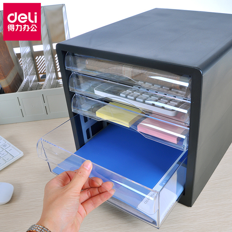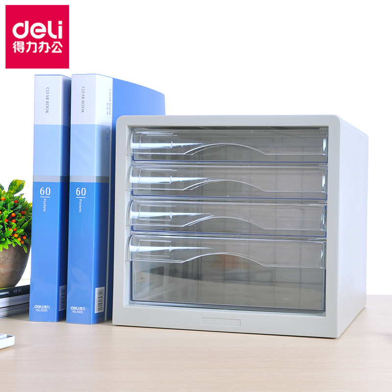 Deli 9774 four-storey drawer stationery sorting cabinet transparent desktop plastic mobile file cabinet A4 file storage box