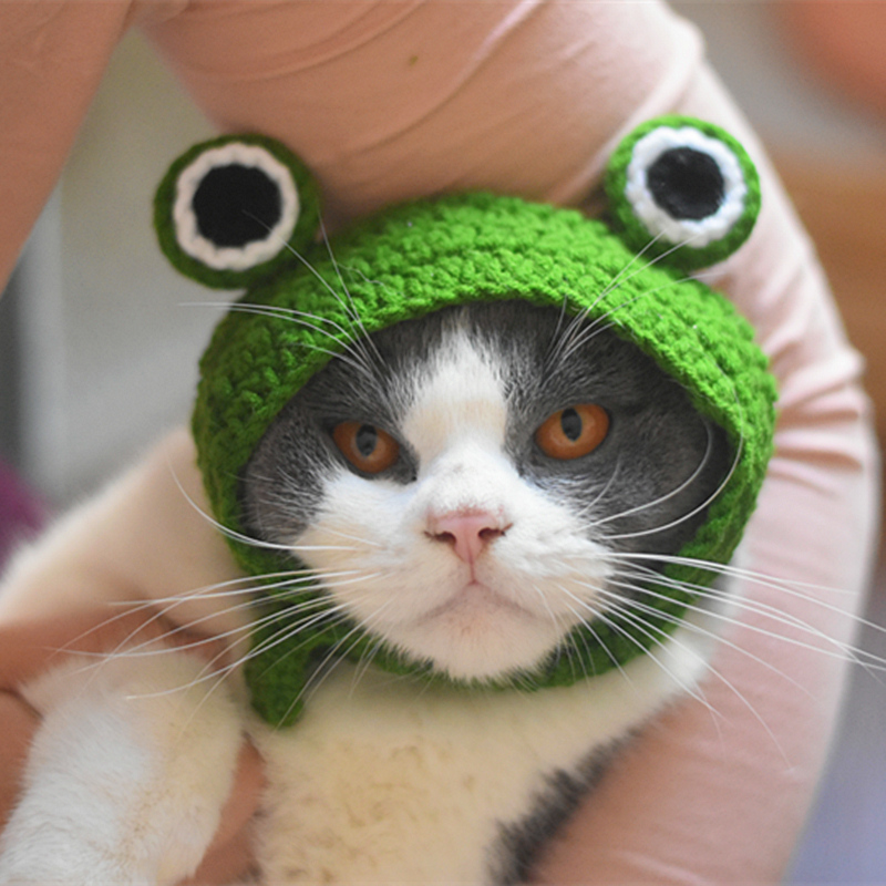 Cute cat frog headgear short funny soft cute hand knitted hat photo props dog pet accessories