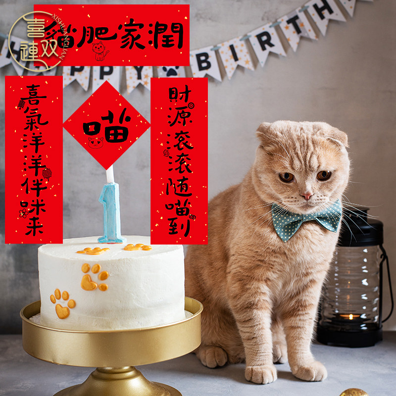 Cat fat Jiarun Peace joy Happy home Treasure Land Beautiful scenery More than a year years quiet good life Two blank rice paper small couplets two sets of spring 85cm Spring Nafu 85