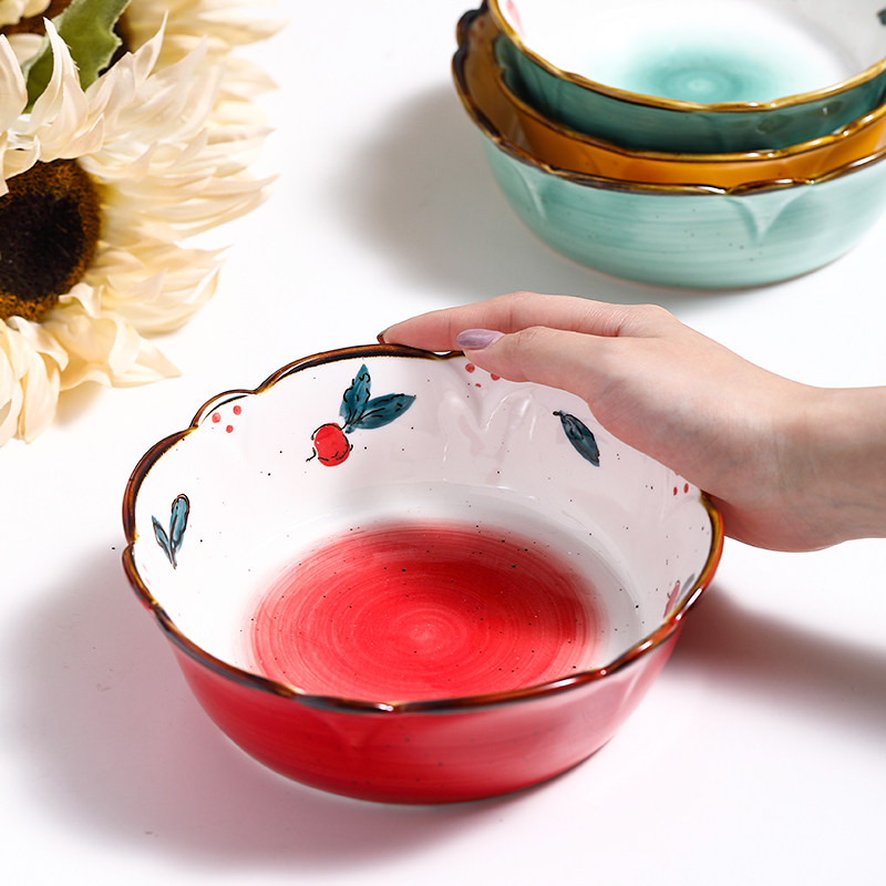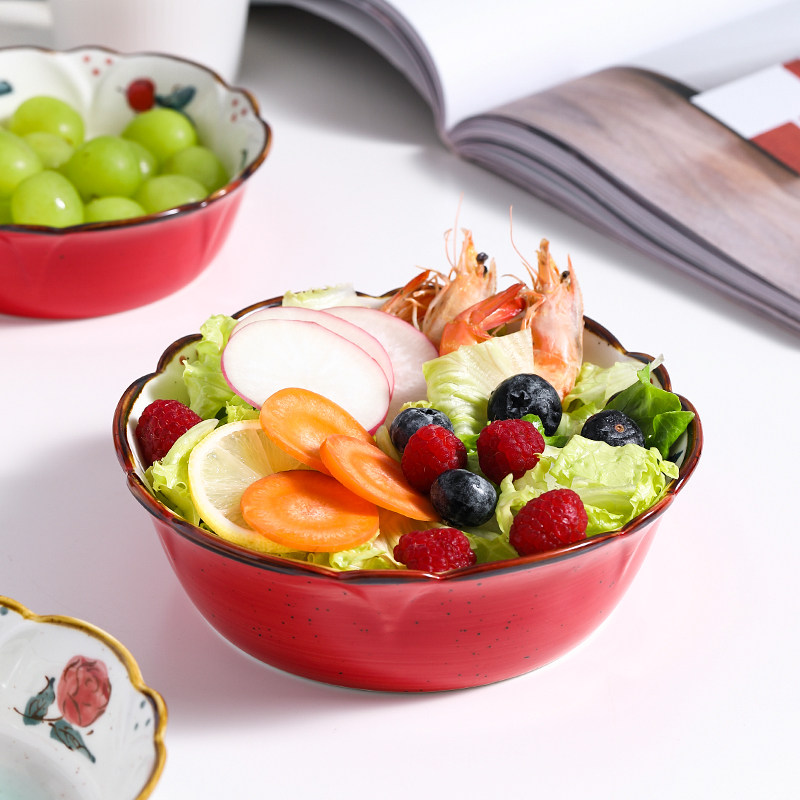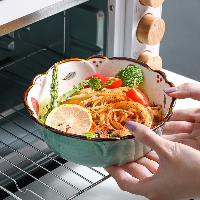 Japanese style cute single bowl Household lace hand painted ceramic baking bowl Baking baked baked rice bowl Salad fruit personality creativity