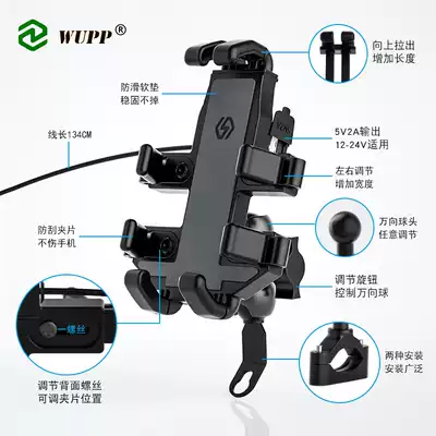 Locomotive mobile phone navigation bracket with usb charging rack locomotive riding aluminum alloy handlebar fixing frame universal type