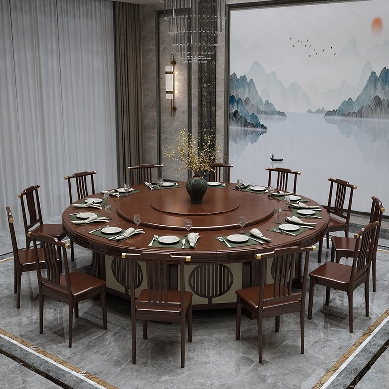 Electric dining table big round table hotel new Chinese-style solid wood with turntable induction cooker hot pot table 20 people 15 box restaurant