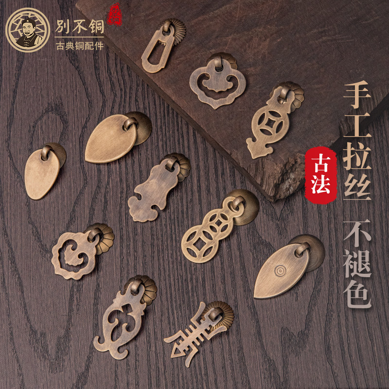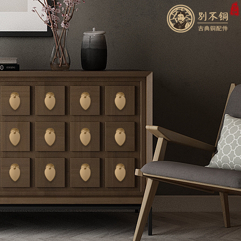 New Chinese solid wood furniture with single holes pure copper handle imitation ancient drawers cabinet door brass handle retro colour overall cabinet pull clasp
