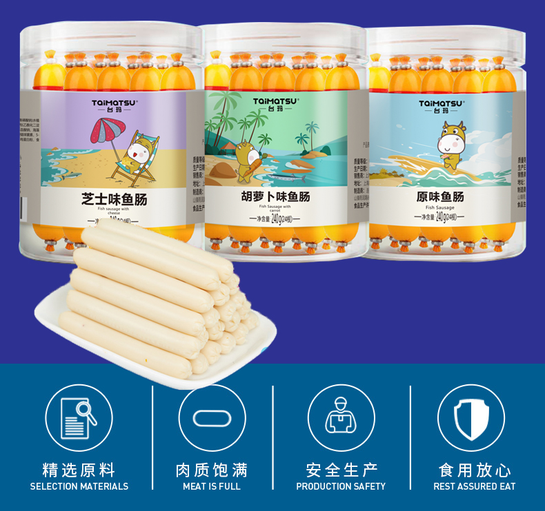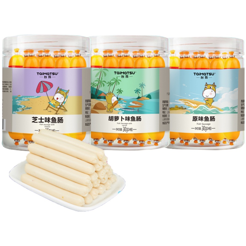Tai Ma Deep Marine Fish Intestine Child Fish Intestine Nutrition Snack baby Meat Ham Sausage Fish Stick 240g (24 roots)